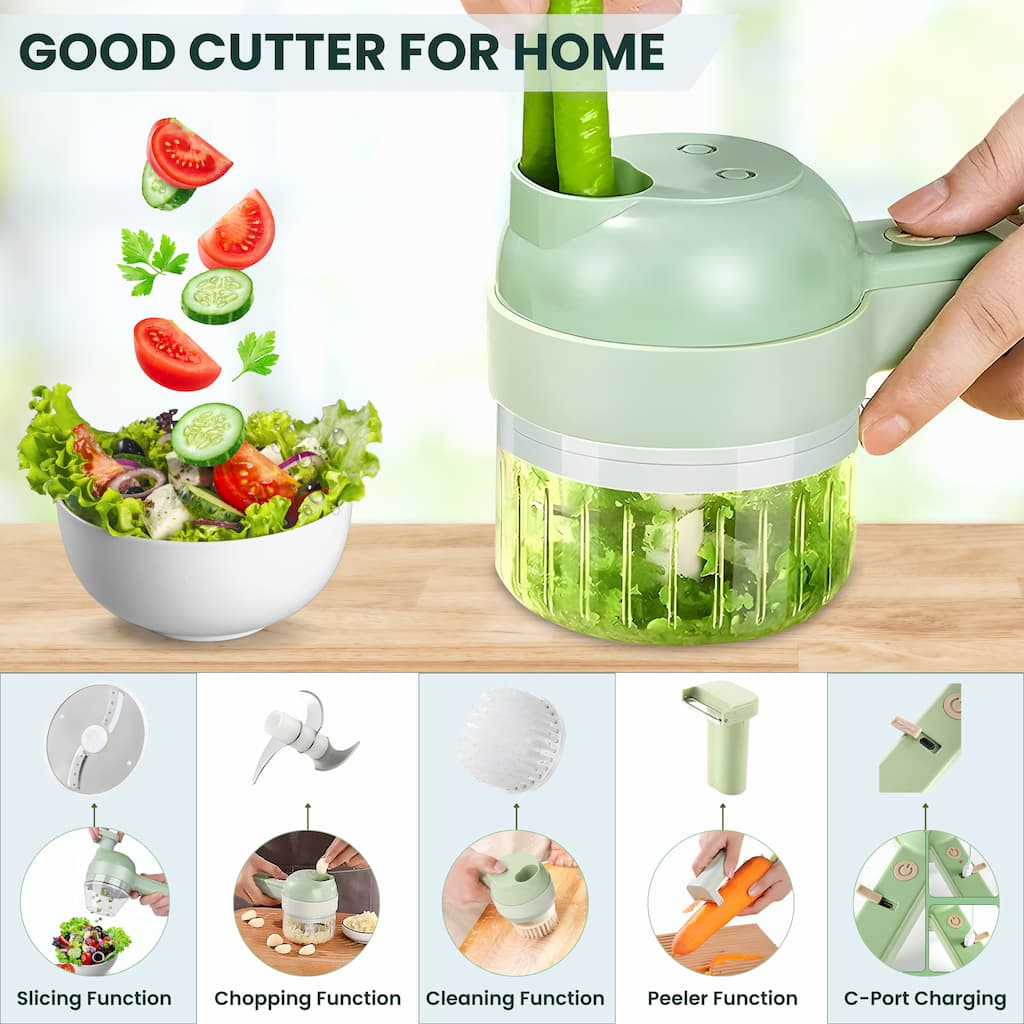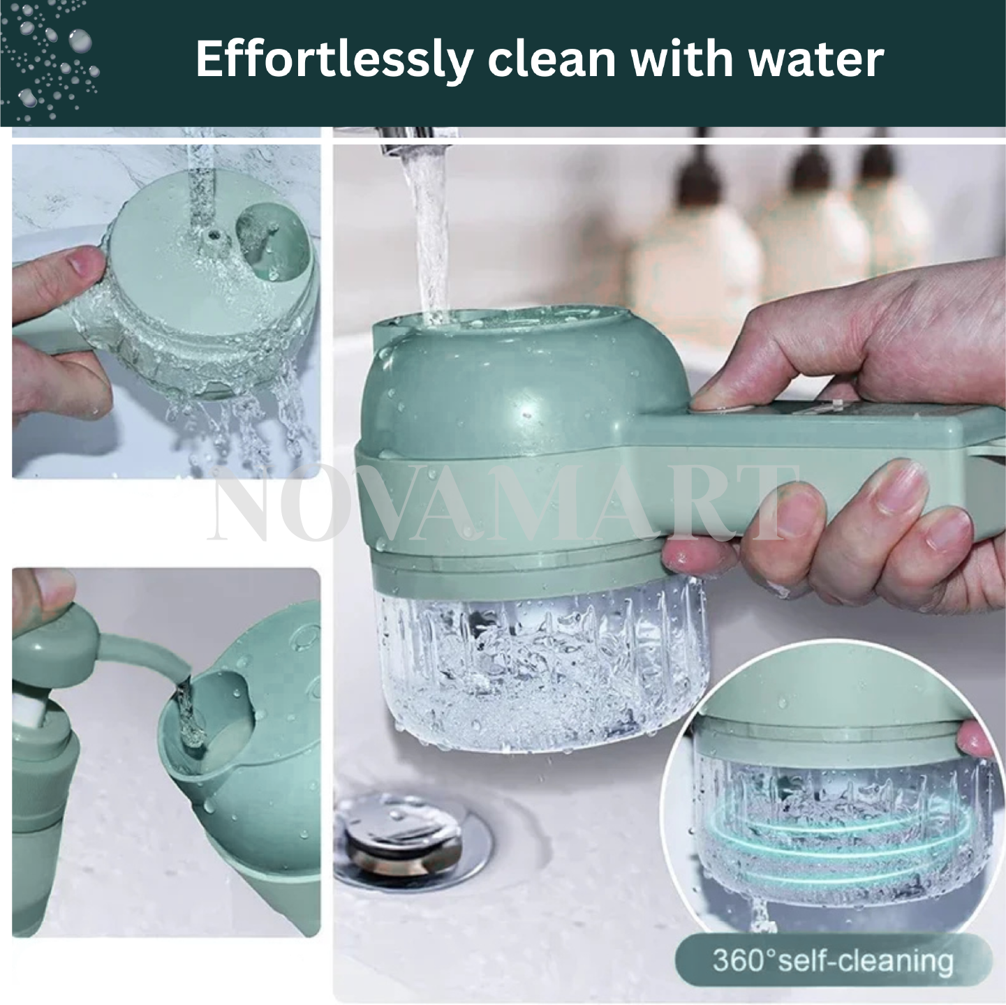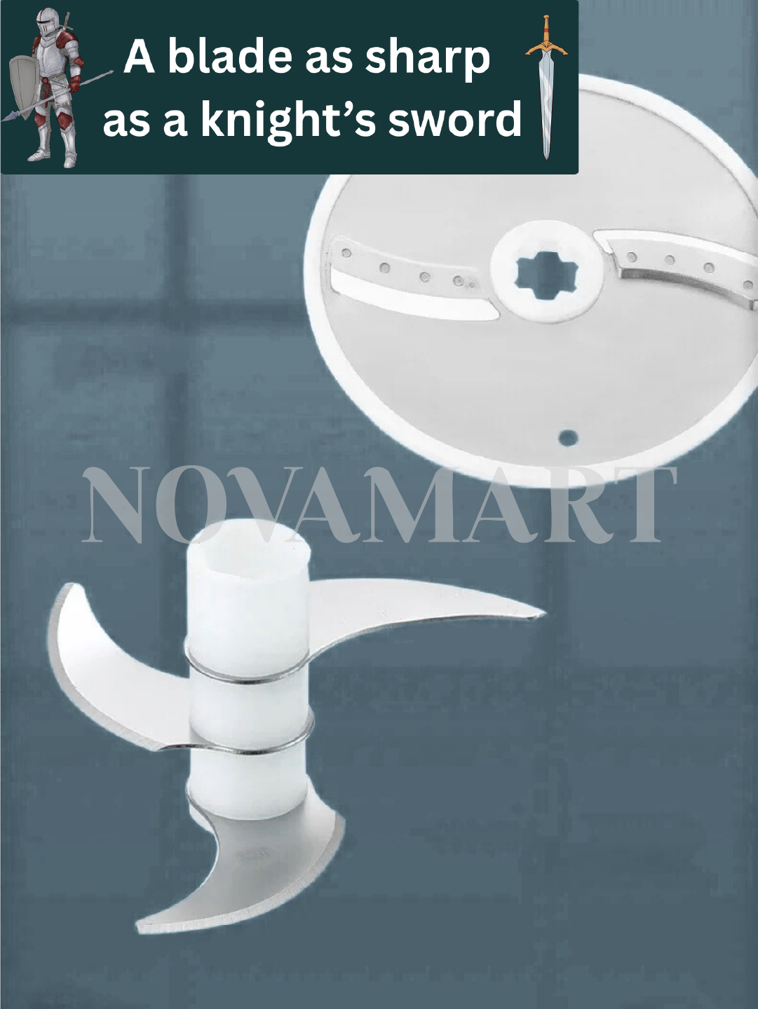 The stainless-steel blades and 4-in-1 design handle both soft and tough ingredients with ease — from carrots and cucumbers to sausages and potatoes — without crushing or jamming.